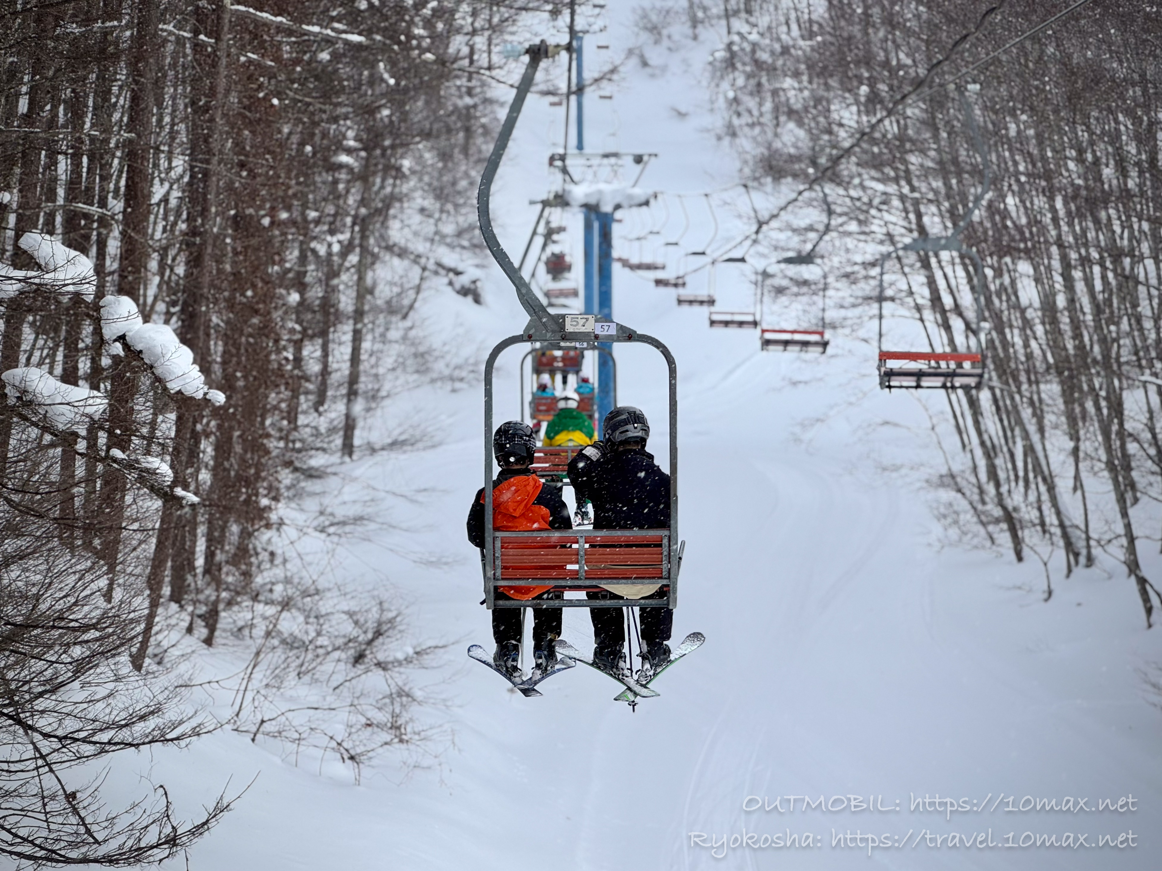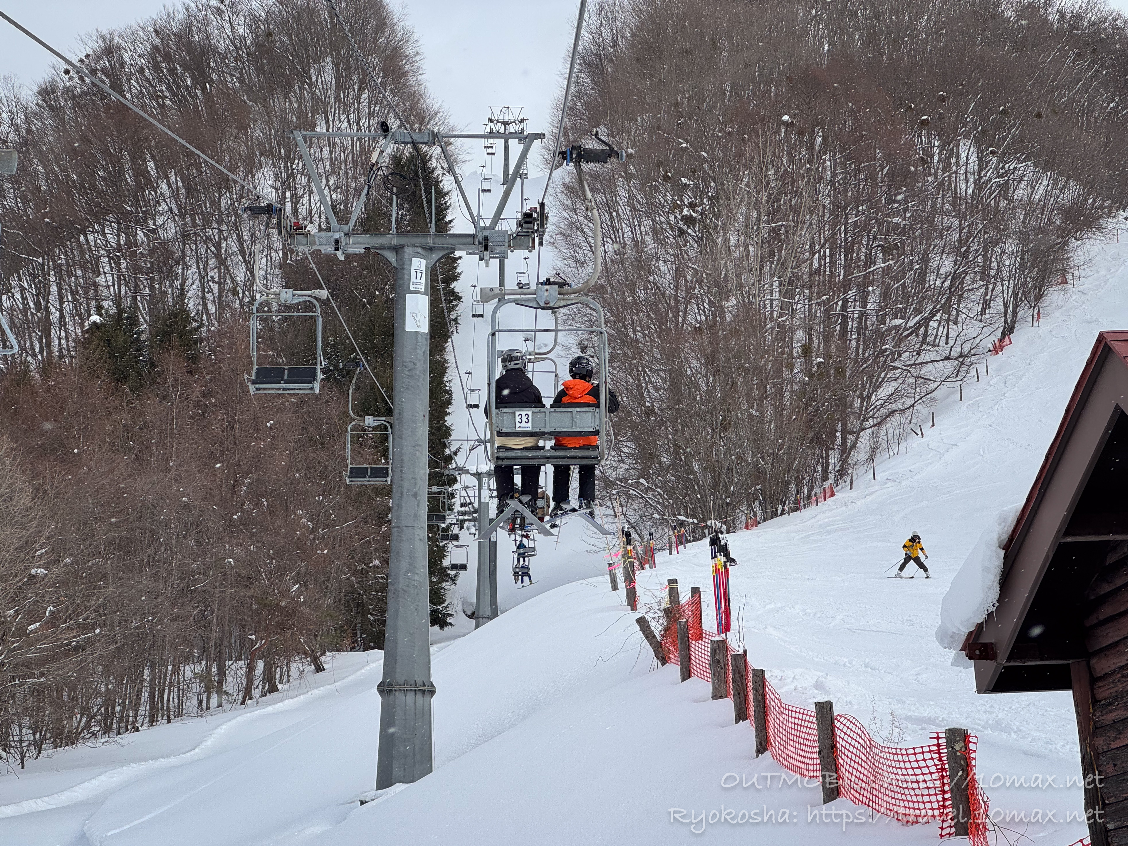 一番下の初級者コースを何本か滑り、奥の第3高速ペアでメインのパノラマ、ロマンスコースを目指します。