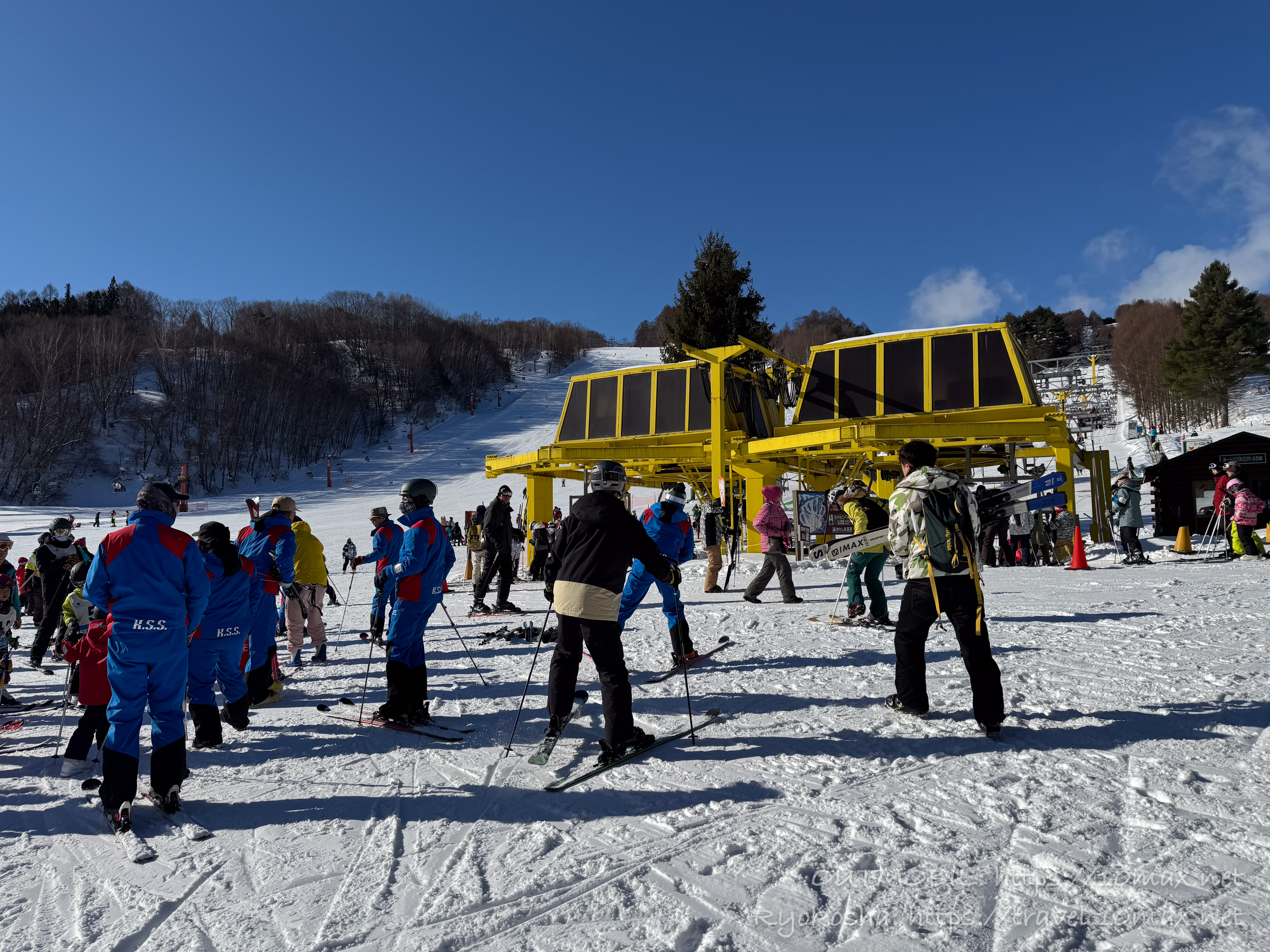 宿で装備を整え、送迎車で戸倉のゲレンデにやって来ました。前日まで雪を積もらせてくれた寒波も去り、最高のコンディション!