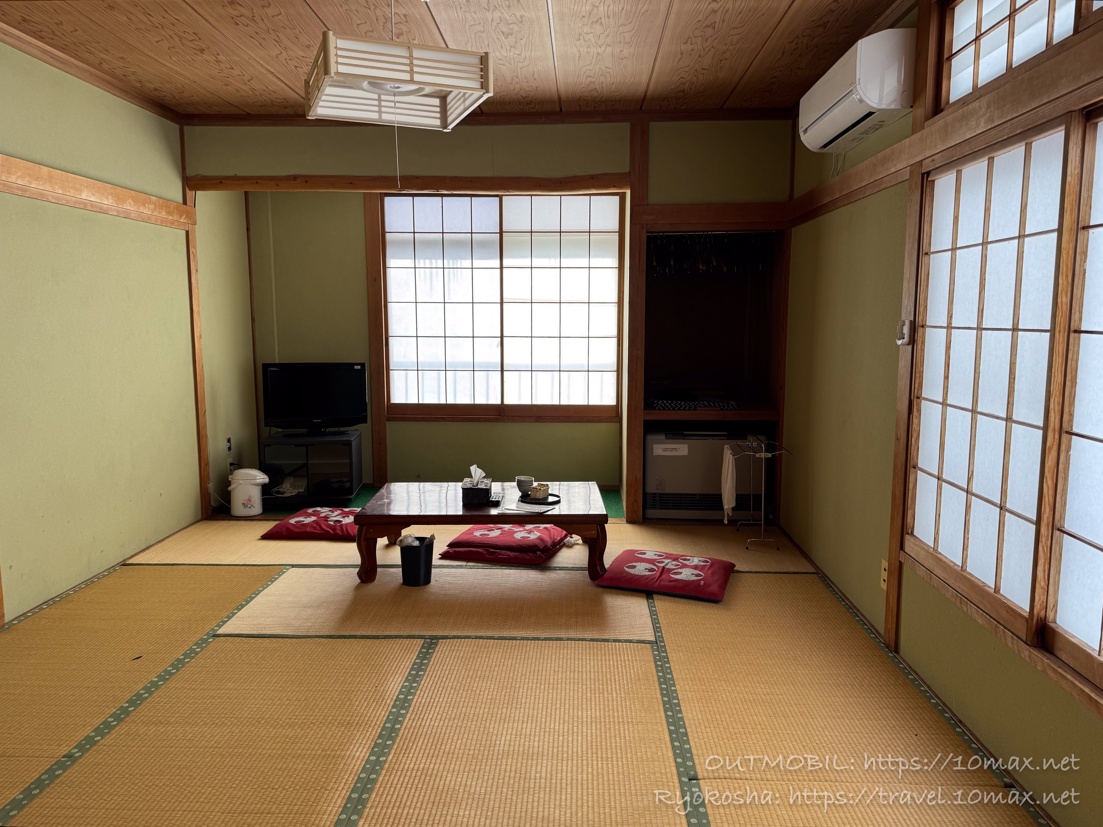 パンパンの太ももで何とかマルイ旅館の部屋に転がり込みました。子供達も大好き、安定の和室です。